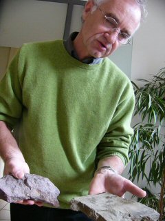 土壌。「クファーグリュベ」と隣通しの畑で、斜面の上部には岩肌が突き出し、